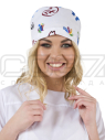 - В затылочной части стянута на эластичную ленту.