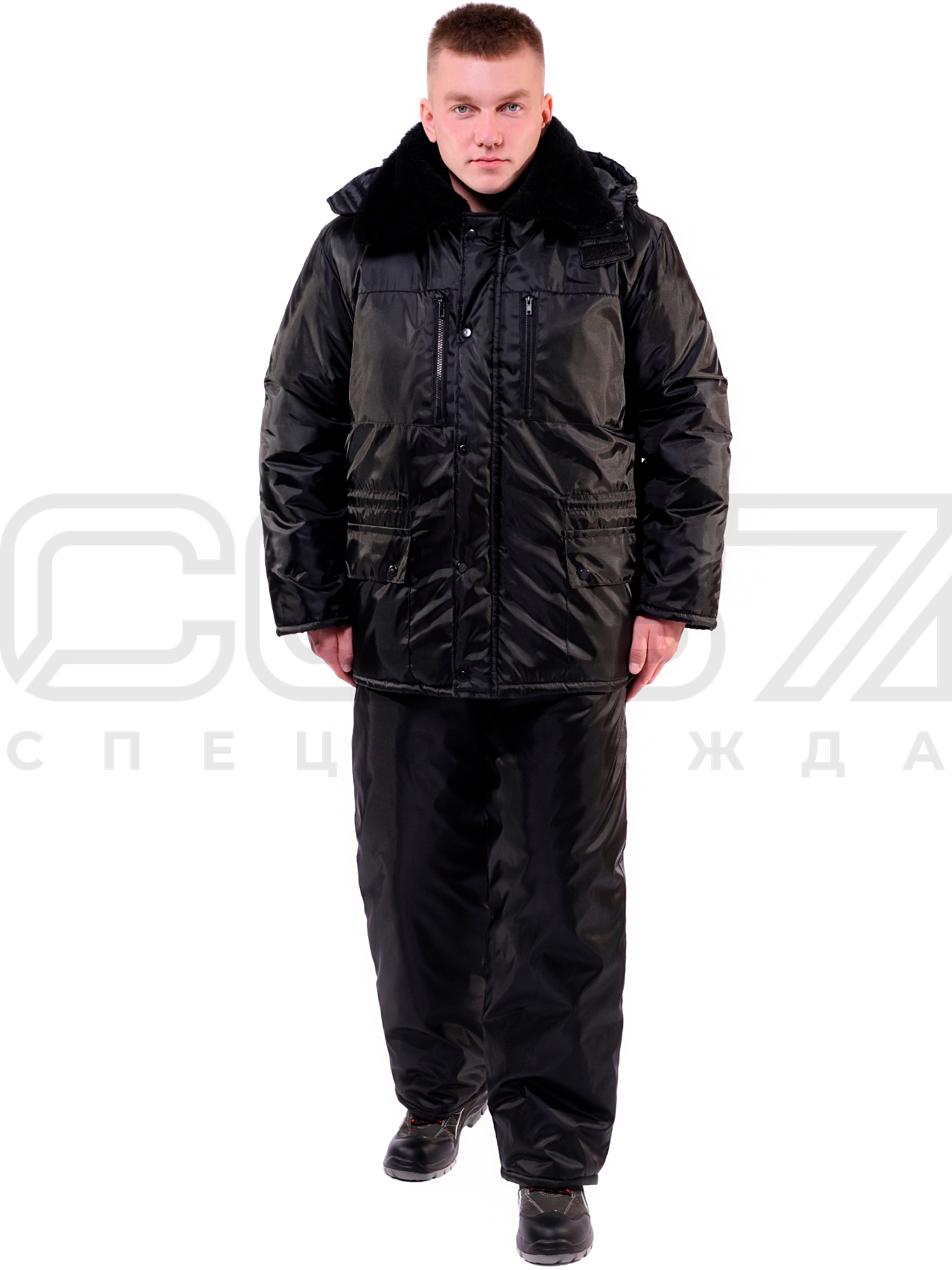 Костюм рабочий зимний охранника "Гарнизон" цв.чёрный тк.оксфорд (куртка+пк) в Симферополе
