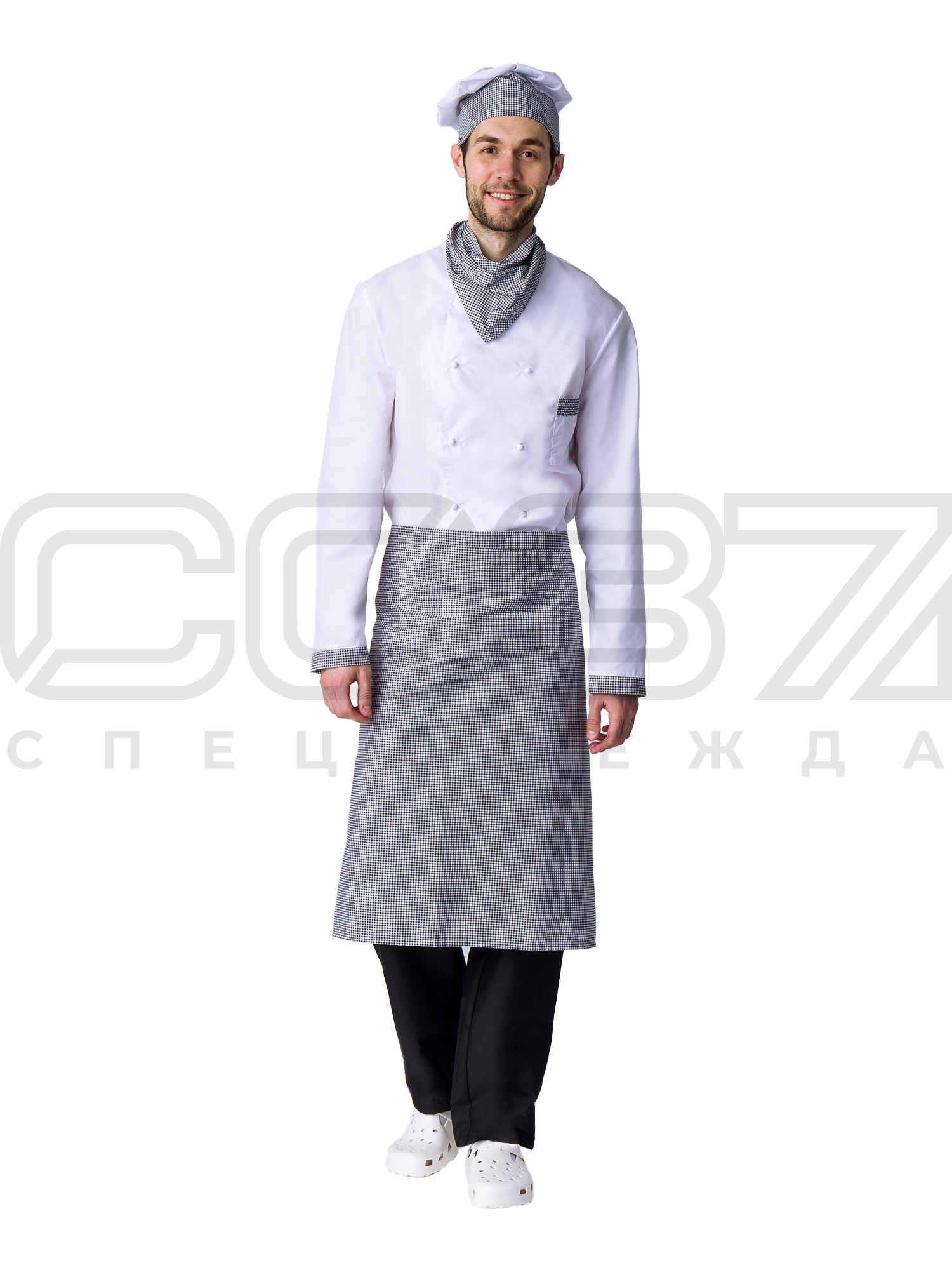 Костюм повара мужской "Рататуй" цв.белый/чёрный принт тк.тиси в Симферополе