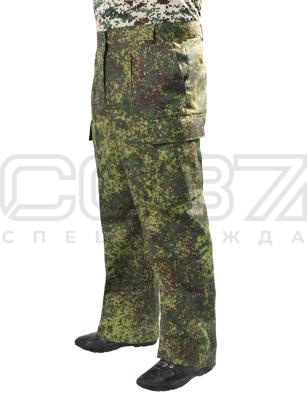 За счет наличия полиэстера в составе ткани, брюки имеют отличные показатели по истираемости и носкости. За счет хлопка - хорошие показатели гигиеничности, приятны на ощупь. Отличительной особенностью камуфляжа «Рип-стоп» является то, что в структуру ткани добавлена армированная нить, позволяющая ей быть более прочной. Сплетения этих нитей в виде клеточек хорошо видны на ткани.